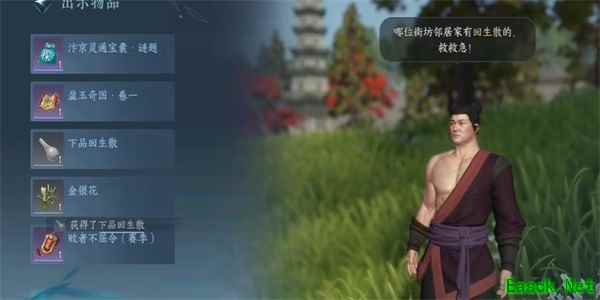 2、玩家可以从对话中得知他们需要下品回生散,然后玩家需要购买并交给他们。