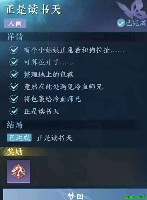 以上就是小编整理带来的逆水寒手游正是读书天任务攻略,更多相关游戏攻略,请关注手游网! 本文内容来源于互联网,如有侵权请联系删除。 |