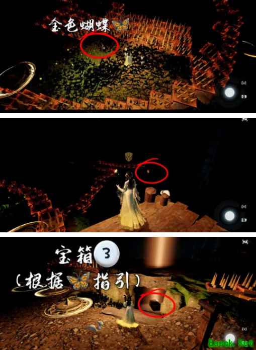 3、继续根据“蝴蝶”指引走,找到第三个宝箱并打开;