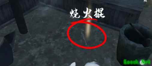 2、接着跟小男孩对话捡起“烧火棍”即可。
