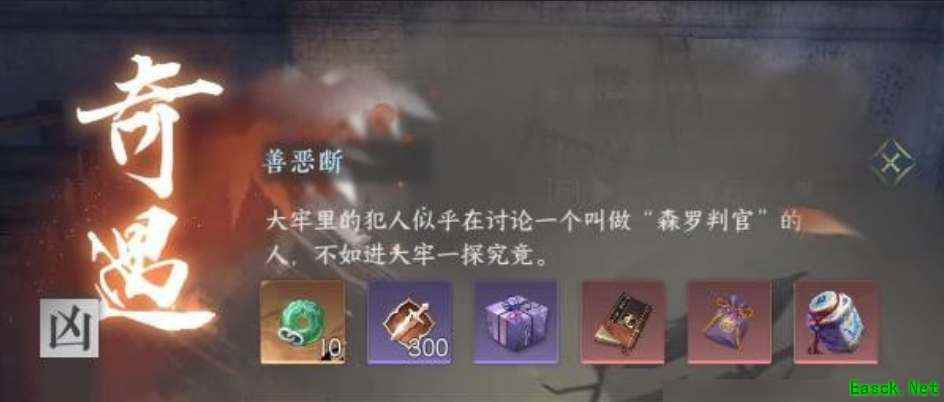 5、完成剧情和调查后返回大牢向李朝阳汇报线索,询问腿伤并选择第二个选项; 6、击败李朝阳并得知他的身份是森罗判官,选择【同意】他的做法可以完成奇遇获得技能善恶断·黑;