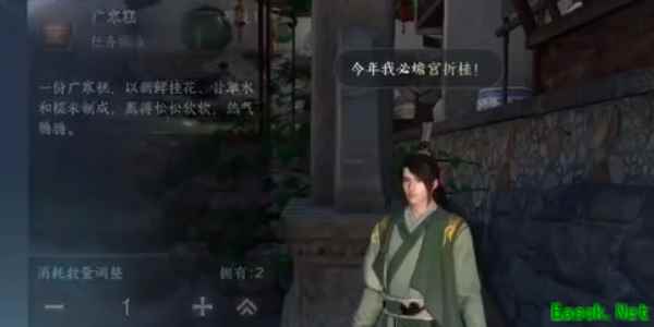 3、然后继续回到游师傅这里对话,对话结束需要去找到赵书生和刘老汉,向其出示广寒糕并对话。