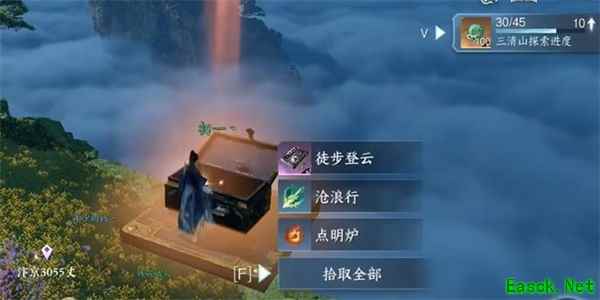 3、最后我们跳跃到宝箱的面前,把宝箱打开之后就可以获取到里面的奖励和徒步登云的技能。