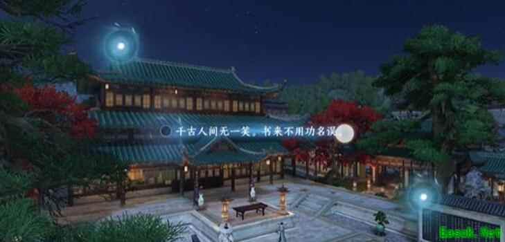 2、玩家根据镜头移动点击中间光点以意象写出第一句千古人间无一笑。书来不用功名误。