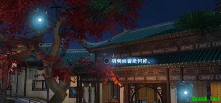 3、接着再随镜头移动点击中间光点以意象作出第二句明朝回首是何佛。