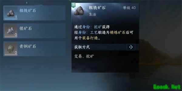 2、接着把背包当中的NPC需要的矿石出示给他(不够的话可以进入到商店进行购买)。