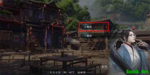 3、接着师姐就让我们猜测花朵的颜色,就需要返回到对话上,寻找到线索答案,我们把正确答案告诉师姐即可。