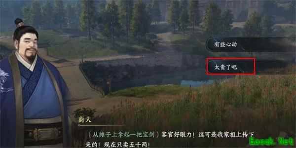 3、接着商人就让我们自己定价,然后根据下图选择的价格,进行定价即可,最后我们就可以获取到宝剑了,同时也完成该任务。