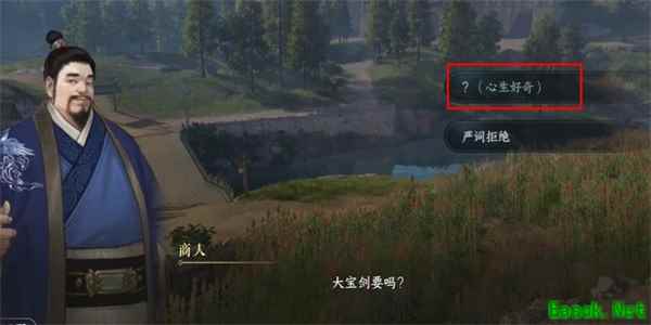 逆水寒手游祖传大宝剑怎么完成1、玩家进到任务中,就会出现一个商人,向我们推销宝剑,根据下图选择对话即可。