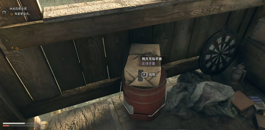 消逝的光芒困兽中在前期最重要的事就是获取装备,各个部位的装备都能提供一定的属性。其中装备套装将提供额外的加成。今天小编为大家带来佣兵套的重要部位——佣兵无指手套的获取方法,下面是详细教学。 佣兵无指手套 1、前往休闲岛安全塔位置。 2、一路向塔顶攀爬,其中在半程处需要利用绳索荡到另一侧继续攀爬。 3、之后在塔顶处可找到佣兵无指手套。