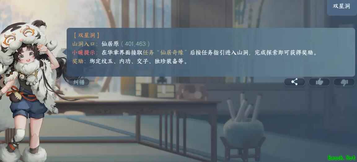 《逆水寒手游》仙居原双星洞进入方法答:8月31日8:00后接取相关任务进入 1、我们先来到双星洞的门口,可以看到有个前置任务双峰照影。