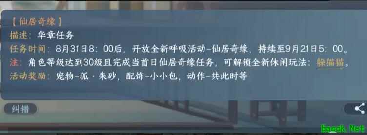 3、随后我们再次询问关于仙居奇缘的相关内容,发现目前还不能解锁,要等到8月31日八点后开放。