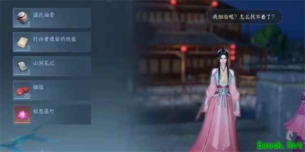 3、然后我们就得NPC的胭脂丢了,我们就把获取到的胭脂出示给NPC,继续进行对话即可。