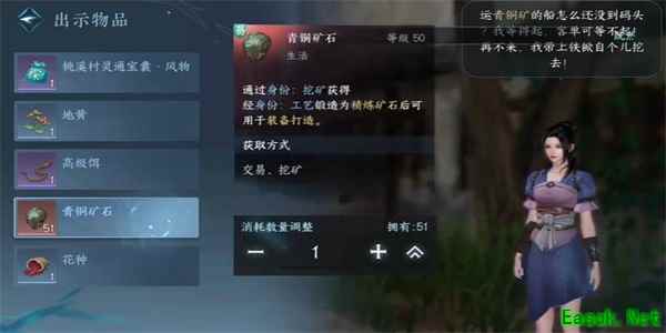 2、接着我们就开始与NPC进行对话,把需要的道具出示给NPC之后,继续进行对话。