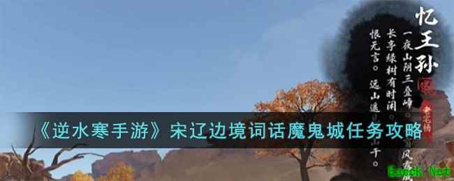 逆水寒手游是一款武侠角色扮演类游戏,游戏中有很多任务需要玩家完成,其中有一个宋辽边境词话魔鬼城任务需要玩家选择忆王孙词牌,相信还有不少玩家不清楚怎么玩,下面小编给大家分享一下宋辽边境词话魔鬼城的任务攻略,有兴趣的小伙伴快来看看吧。