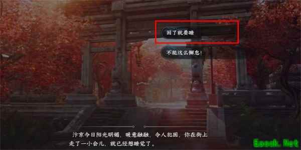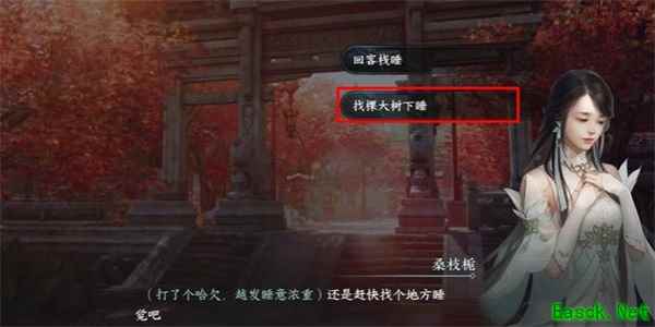 2、接着我们就需要选择在哪里睡觉,按照标记好的对话进行选择即可。