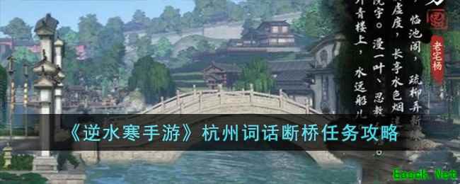 逆水寒手游是一款武侠角色扮演类游戏,游戏中有很多任务需要玩家完成,其中有一个断桥任务需要玩家去往目的地并选择词牌占春芳,相信还有不少玩家不清楚怎么玩,下面小编给大家分享一下杭州词话断桥的任务攻略,有兴趣的小伙伴快来看看吧。