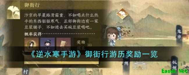 《逆水寒手游》御街行游历奖励一览1、我们前往到此任务当中,根据任务指引前往到汴京买豆浆喝,在此就可以看到好多人在排队,会进入到一段对话。 2、接着我们就在排队的人当中看到的李师师身边的丫鬟,与这个NPC进行对话即可。