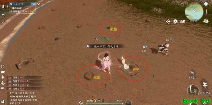 1、在仙居原(576,879)处,找到贺漱石,对话领取赶海用的铲子等工具,即可开始赶海!