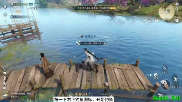 3、与指定的NPC对话,完成剧情任务。 4、在垂钓点找到一个合适的位置打开垂钓界面,使用垂钓竿和鱼饵开始垂钓。