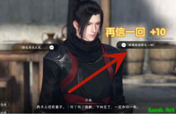 逆水寒手游诺千金好感度选项怎么选1、玩家首先选择“那便再信师兄一回”选项。