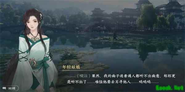 2、接着年轻姑娘因无人听出曲子的意思就离开了,此时玩家需要将她丢在地上的手帕捡起。