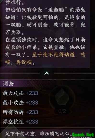 3、词条:最大攻击、最小攻击、所有防御、浮空抗性全都会增加233。 以上就是小编整理带来的《逆水寒手游》玄铁重靴获得攻略,更多相关游戏攻略,请关注手游网! 本文内容来源于互联网,如有侵权请联系删除。 |