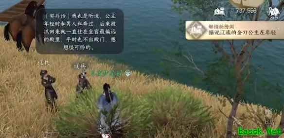 2、接着是前往到【652,452】这里,在这里是继续偷听对话,这里是直接站在后面偷听即可。 3、然后是前往到宋辽边境【602,437】这里,在草丛这里是偷听到第三个传闻。