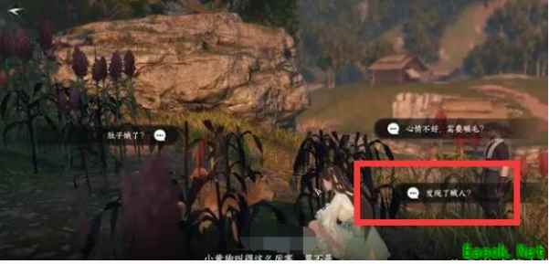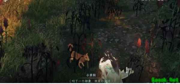 2、与面前的小黄狗进行对话,选择“发现了贼人”。
