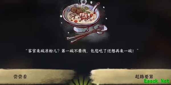 4、接着在凉粉这里选尝尝看,之后会出现一些随机事件,完成随机事件可获得三个令牌;