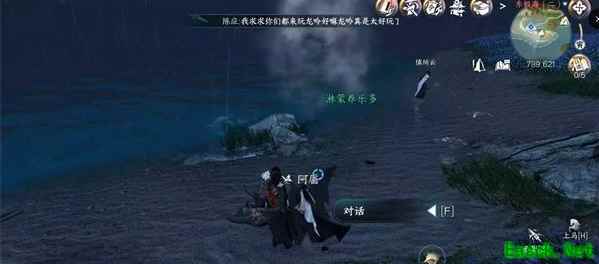 2、到东极海(773.621)处触碰光柱,然后到东极海(789.621)处对话“阿靥”。