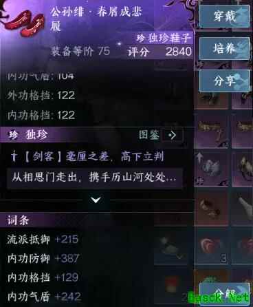 四、独珍装备 1、公孙绯·春屑成悲履 获取方法:前往坐标东极海镇海湾坐标(1718.635)击败野外强敌公孙绯获得。