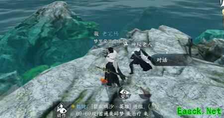 《逆水寒手游》破极之剑任务攻略1、进入任务来到地标173.695.37与神秘老人扫进行对话触发剧情。