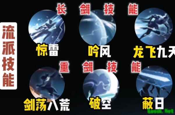 3、残月、辉光、雷龙天翔、暮雪、惊鸿、逐星阵和剑荡八荒 解析:适合新手玩家的加点,在副本中只需要依次释放技能就能打出极高的输出。