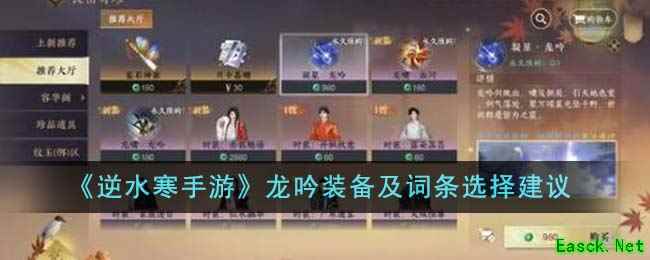 逆水寒手游龙吟装备及词条怎么选?逆水寒手游里面很多人都想要给龙吟搭配适合的装备的呢,那么还需要选择装备对应的词条也是很重要的,今天就给大家带来选择方案了,给角色提供的效果都是不一样的,不会的来看看吧!