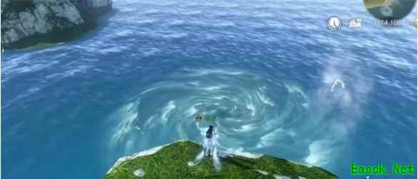 3、到达该位置玩家即可看到水中的漩涡。 4、之后需要玩家跳下水进入漩涡里面。