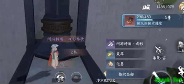 7、第七个宝箱:先进入镜天阁(1408,1102)坐标的镜中世界,然后在(1436,1078)坐标的石台上打开宝箱可以获得戏彩特质。