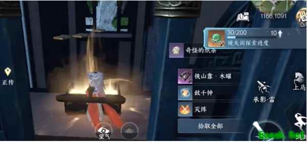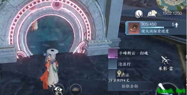 12、第十二个宝箱:镜天阁(1906,1248)坐标进入镜中世界,开启四个小宝箱后在镜中世界开启大宝箱可以获得技能千峰断云。