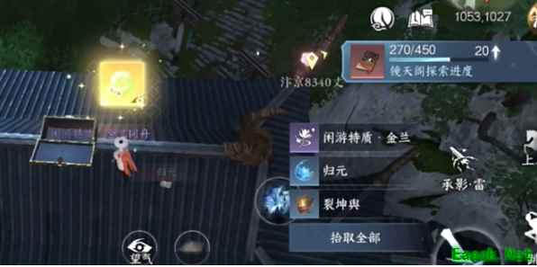 8、第八个宝箱:镜天阁(1061,1038)坐标触发挑战后,完成挑战在(1053,1027)坐标打开宝箱可以获得金兰特质。