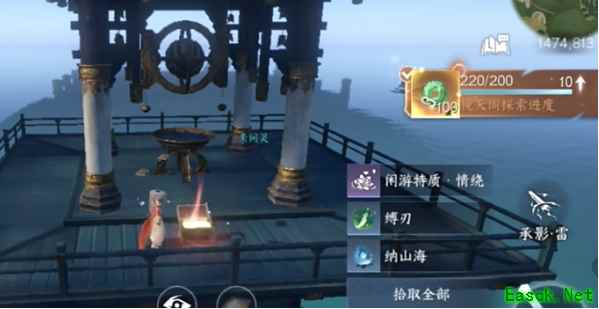 6、第六个宝箱:镜天阁(1474,813)坐标的楼阁打开宝箱可以获得情绕特质。