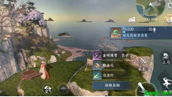 3、第三个宝箱:镜天阁(830,908)坐标的山岩上打开宝箱可以获得技能金钢通臂。
