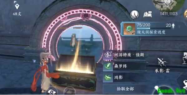 4、第四个宝箱:镜天阁(1411,1103)坐标的镜子前面打开宝箱可以获得佳期特质。