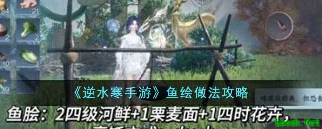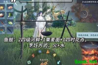 《逆水寒手游》鱼绘做法攻略制作方法: 1、鱼脍食谱 2四级河鲜+1栗麦面+1四时花卉