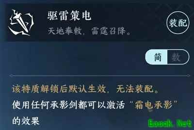 4、这样子玩家就可以打开宝箱获得驱雷策电。 5、注意该特质不能装配,玩家需要使用承影剑激活霜电承影。