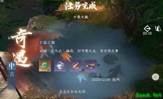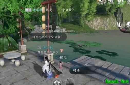 《逆水寒手游》十袋之疑奇遇攻略1、首先到达杭州(773,1079)位置处并捡起附近的空口袋。