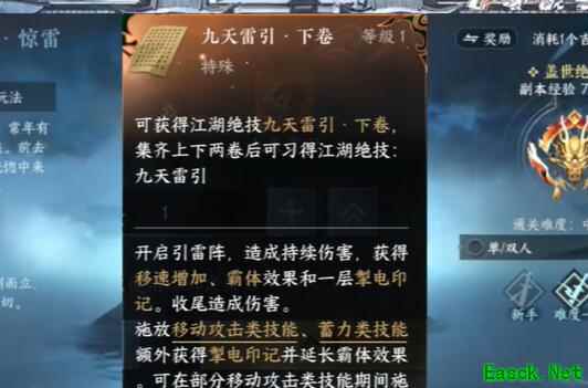 2、首次通过英雄难度的洞庭问剑,就可以获得九天雷引上卷。