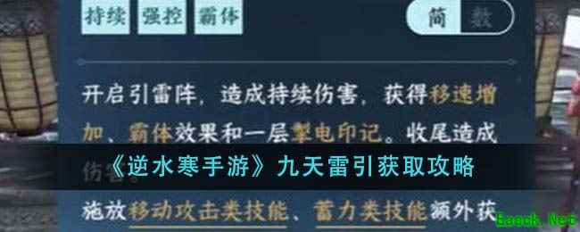 《逆水寒手游》九天雷引获取攻略答:需要集齐九天雷引上下2卷才能获得 获得方式: 1、需要集齐九天雷引上下2卷才能获得。