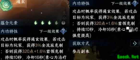 1、通玄: 攻击时有一定的机会可以得到这个效果,要是大家去共攻击玩家,就可以得到3%全流派克制,要不然就可以得到320点+1.6%首领克制持续10秒,冷却16秒 2、大家可以用这个去玩副本&竞技,可以打出不错的爆发效果的,可以很好的克制流派/首领克制。 3、PVE要是我们走三木周天那么就是木绝电飞光的平替,木系周天的内功也是可以值得我们去用的。 以上就是小编整理带来的逆水寒手游通玄抽取建议,更多相关游戏攻略,请关注手游网! 本文内容来源于互联网,如有侵权请联系删除。 |