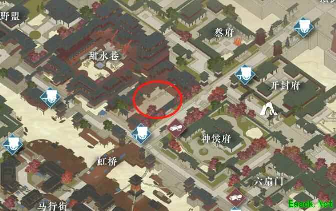 3、前往地图边缘,进入汴河区域找到石棺,躺进去。
