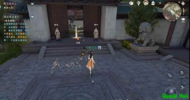 “无根净尘”奇遇的触发与完成方式: 1、与甜水巷大门口的阮燕语对话。